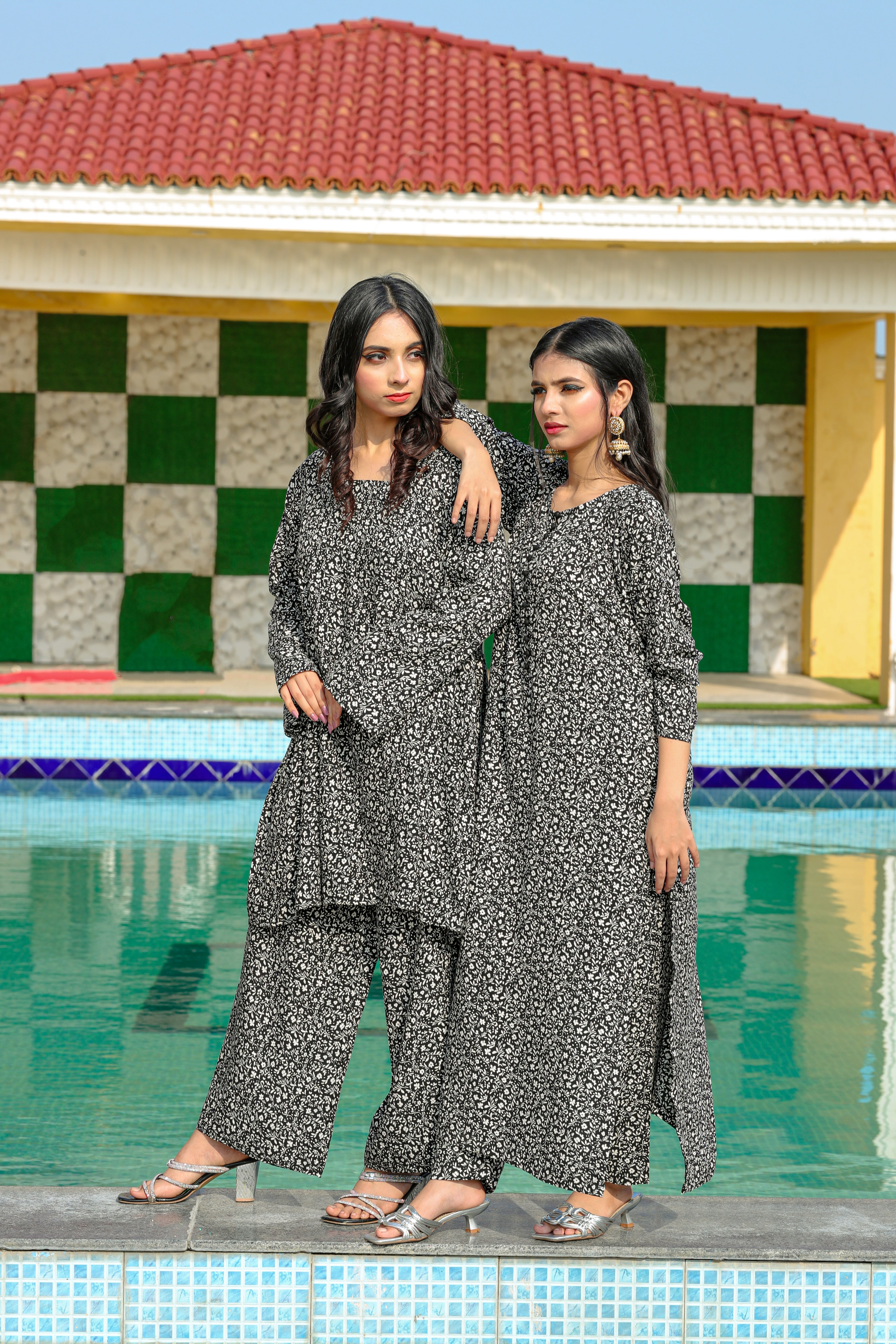 Top Fabric: Premium Linen | Black & White | Long Kameez + Short Kameez | Elegant Finish